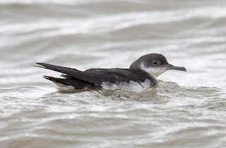 A Manx Shearwater was on the beach but shuffled in when a dog approached - pic Mike Davey, who advises it later succumbed- nabbed by a Great Backed Gull. Another victim of the disorientation of the bright lights of Milford Haven.