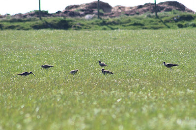 Only a couple of hundred metres away a flock of 12 Whimbrel were in a field adjacent to the track on the way to the YHA, six in the picture below.